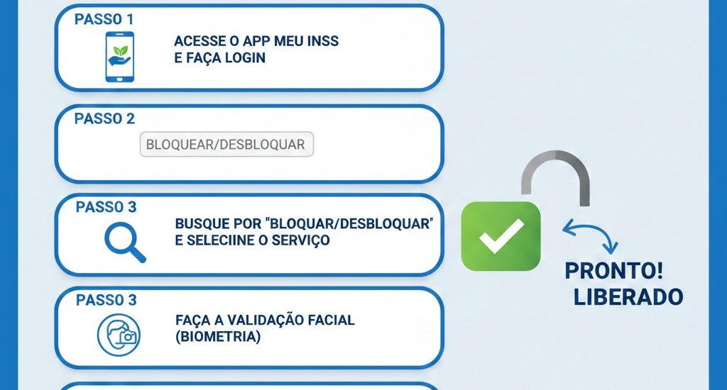 Por segurança, o INSS mantém o seu benefício bloqueado para novos empréstimos por um período, geralmente após a concessão. O desbloqueio é um procedimento obrigatório, totalmente gratuito e deve ser feito por você, diretamente no aplicativo ou site Meu INSS.
